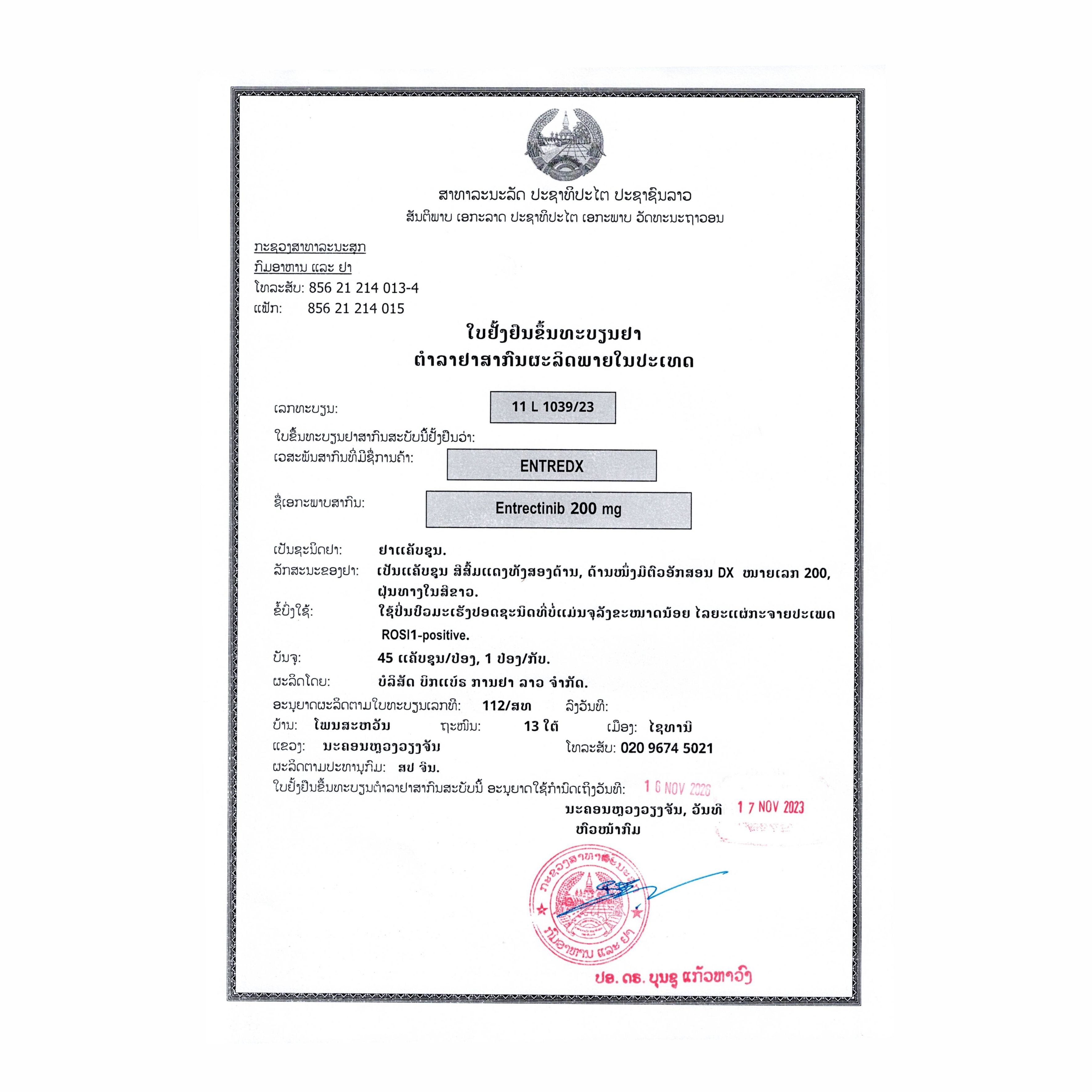 名称: 恩曲替尼胶囊
