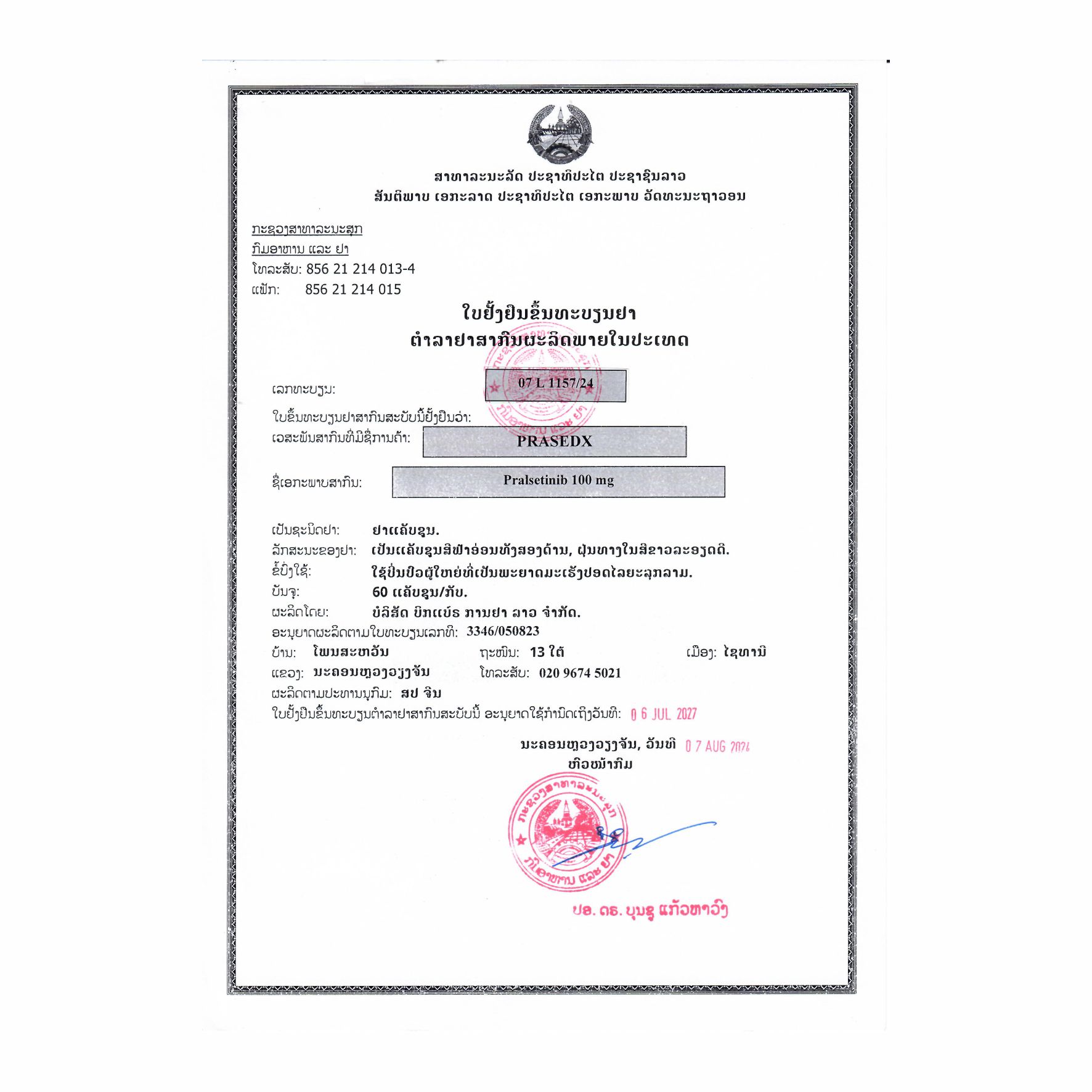 • 需要全身治疗且放射性碘耐药(如果放射性碘合适)的12岁及以上患有晚期或转移性RET融合阳性甲状腺癌的成人和儿童患者。