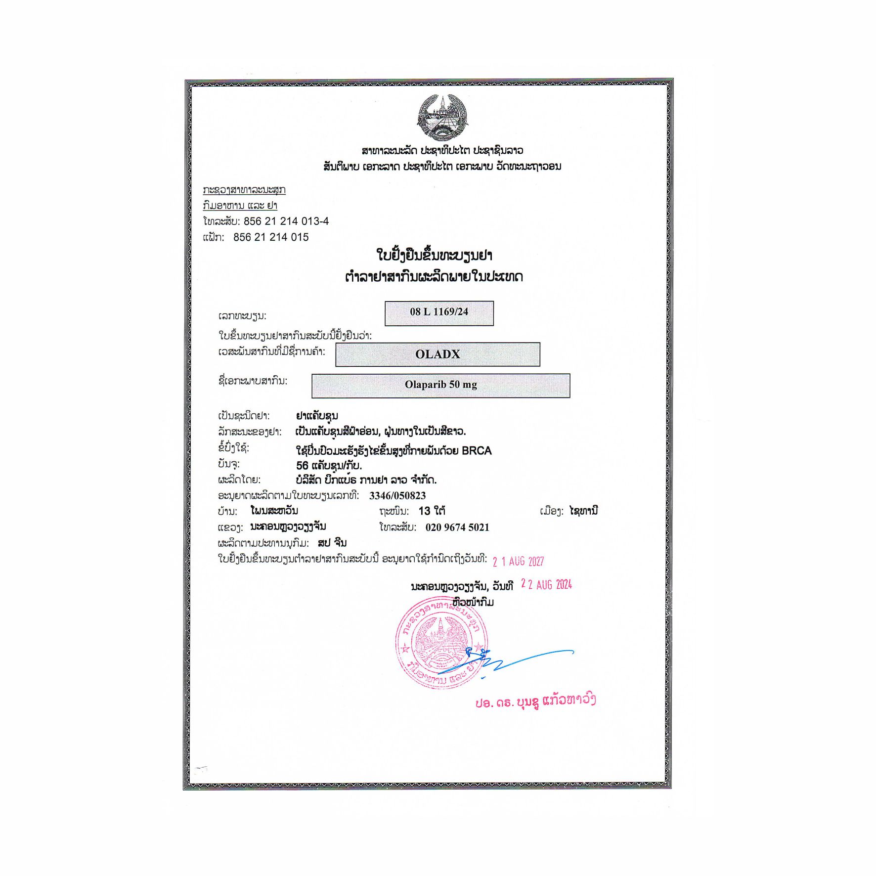 厂家:Bigbear Pharmaceutical Laos