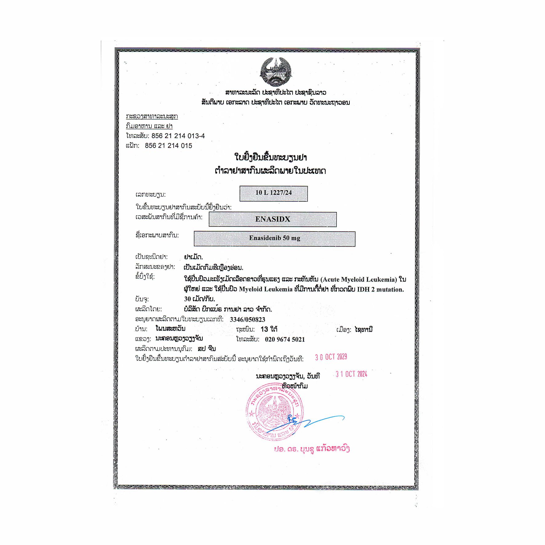 ENASIDX 是一种处方药,用于治疗患有异柠檬酸脱氢酶 2 (IDH2) 突变的急性髓性白血病 (AML) 患者,这些患者的疾病在之前的治疗后复发或没有改善。