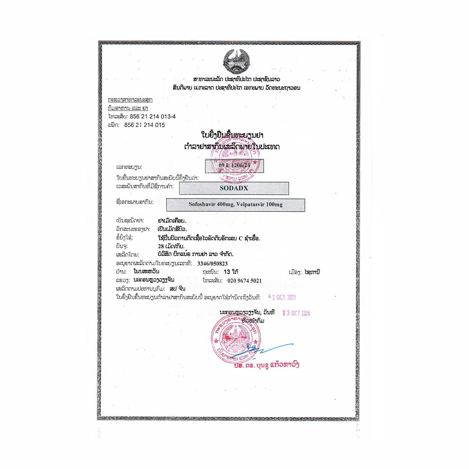 索达/吉三代,SODADX,Sofosbuvir/Velpatasvir 400/100mg