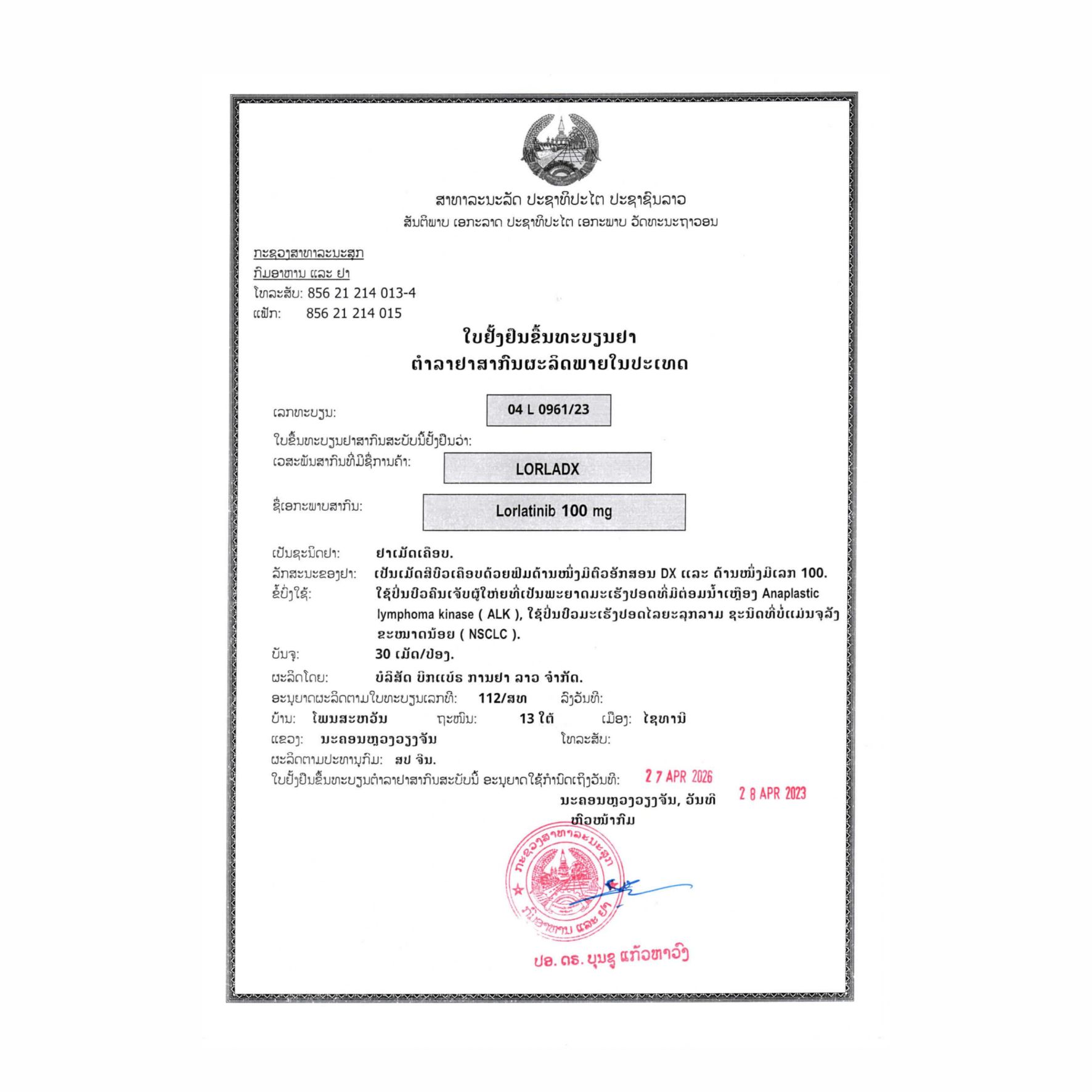 英文名称:Lorlatinib Tablets