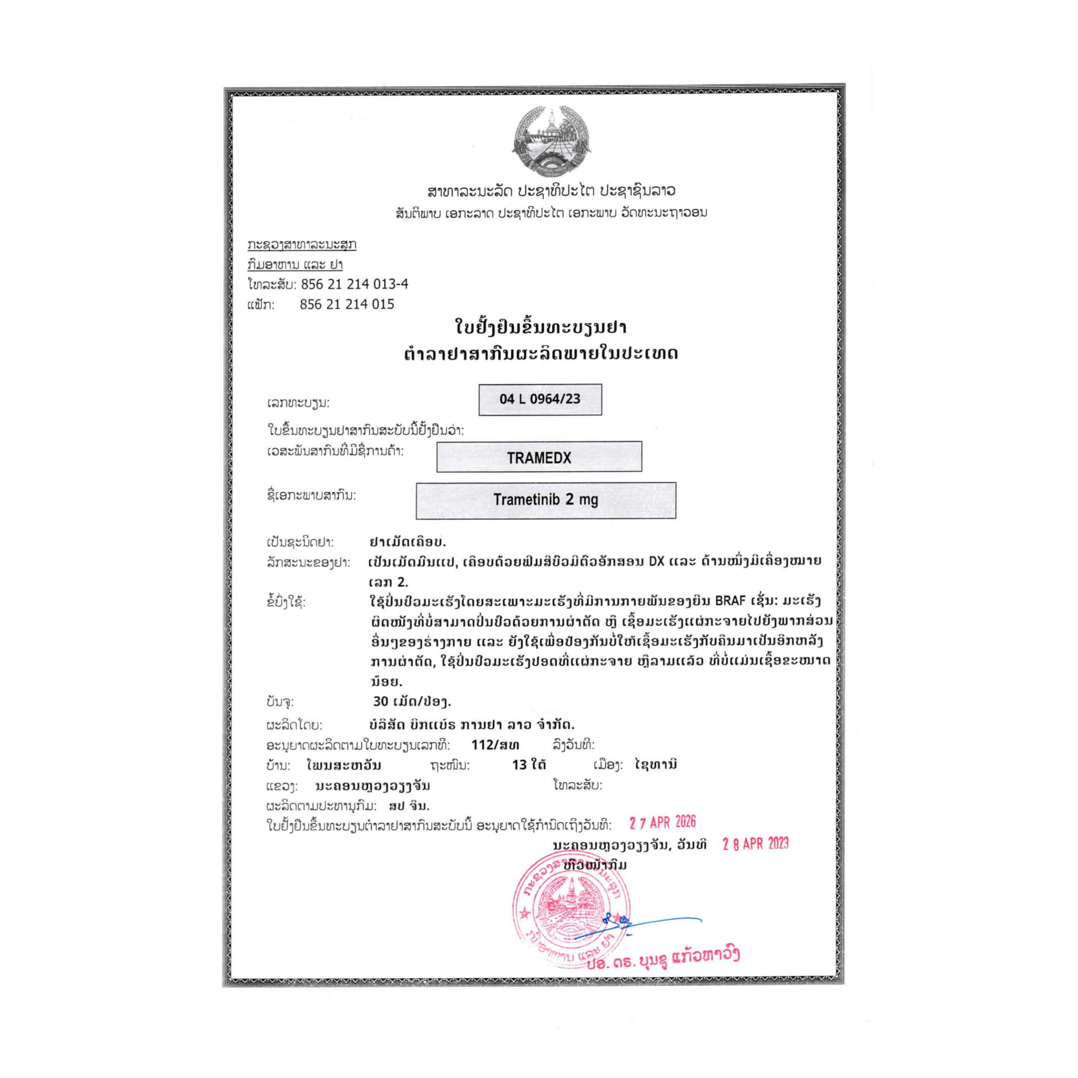 英文名称: Trametinib Tablets