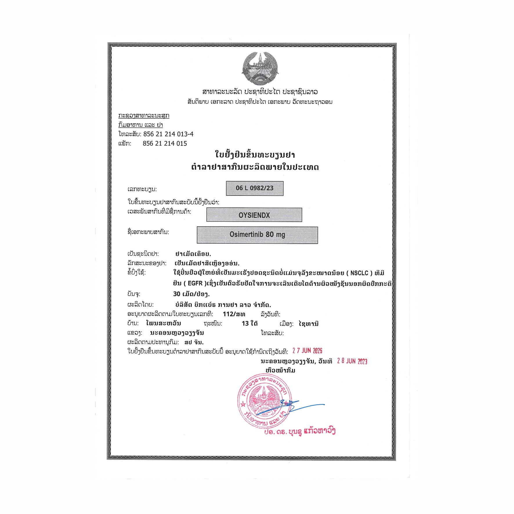 名称:奥西替尼片
