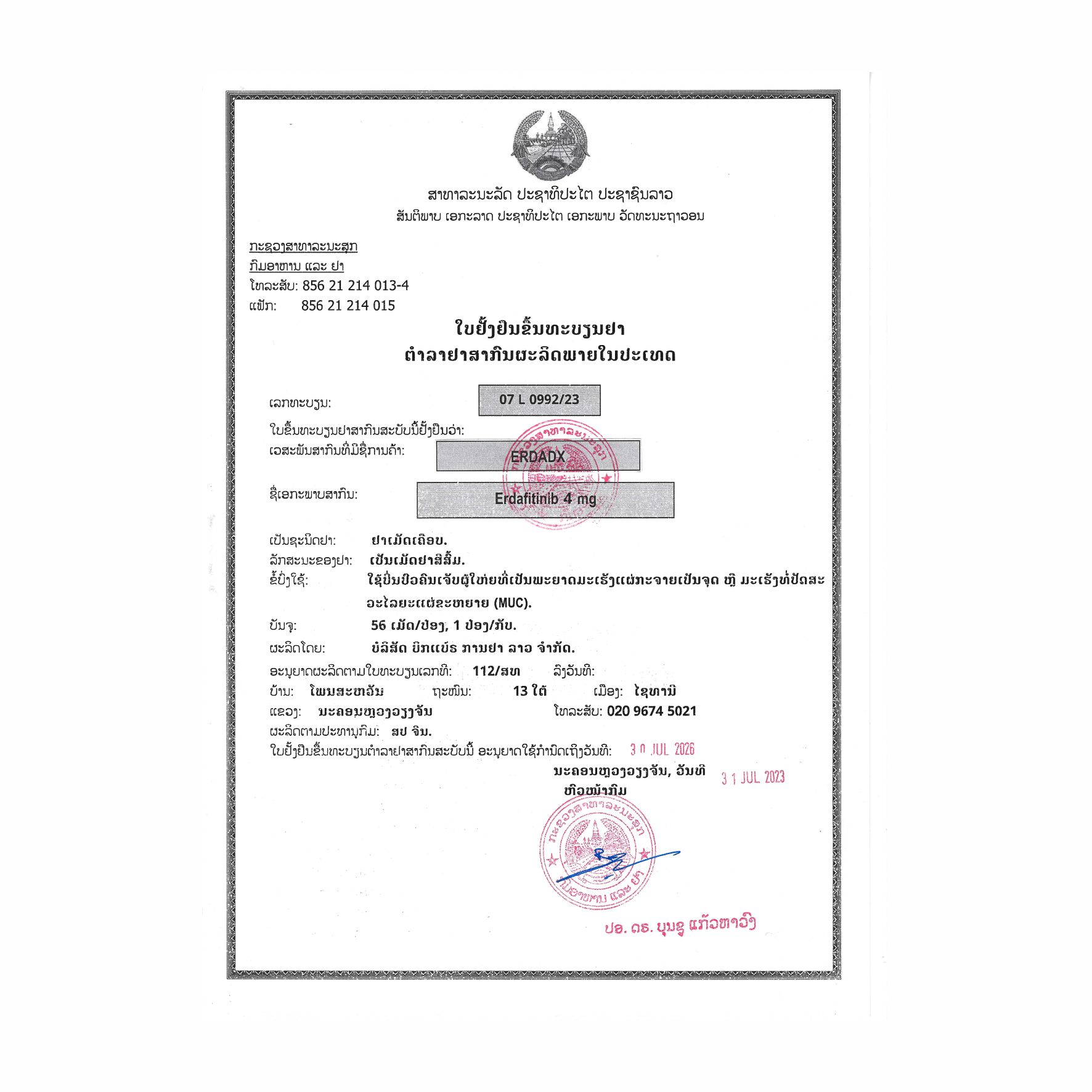这些并不是 ERDADX 可能产生的所有副作用。 欲了解更多信息,请咨询您的医疗保健提供者或药剂师。