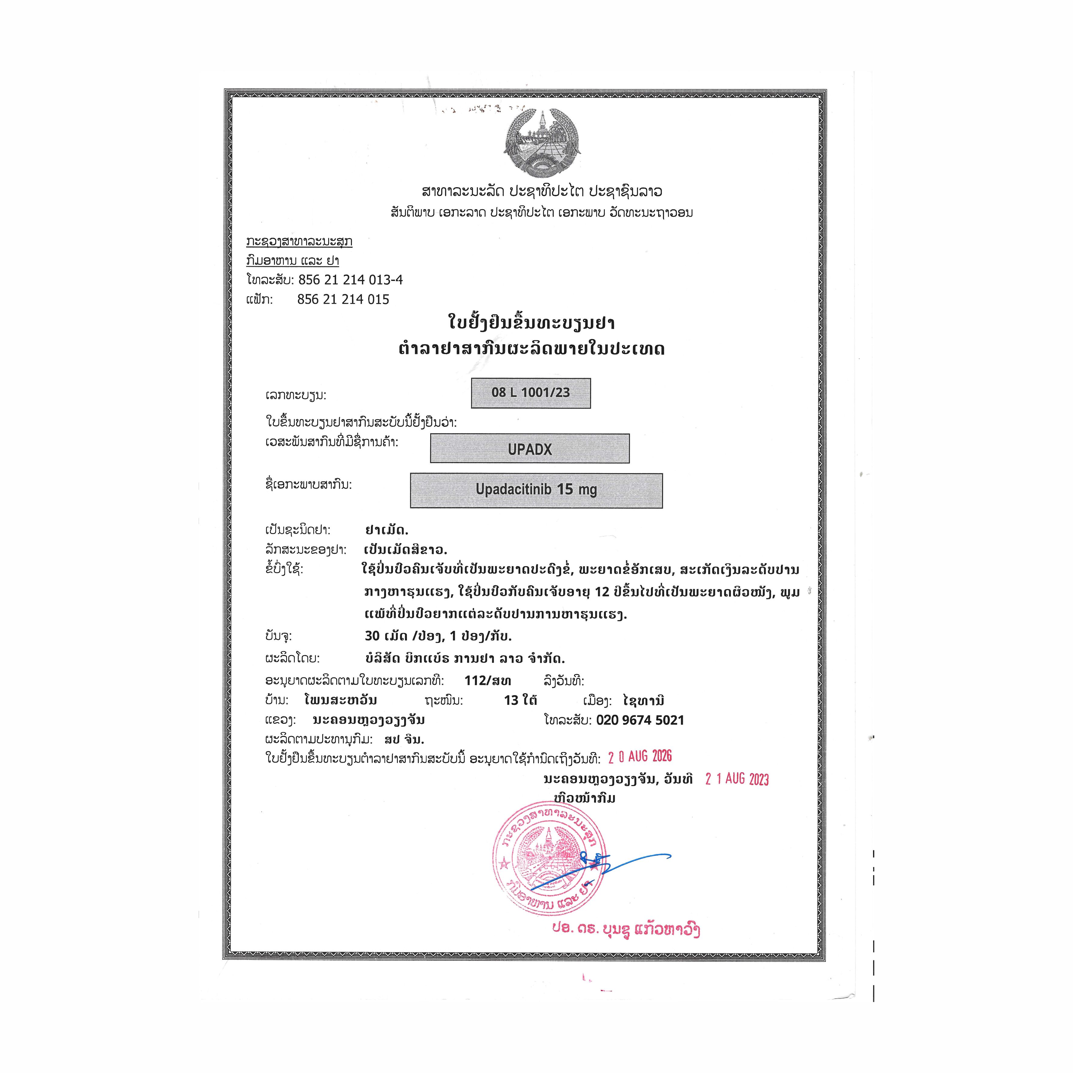 UPADX是一种处方药,是 Janus 激酶 (JAK) 抑制剂。