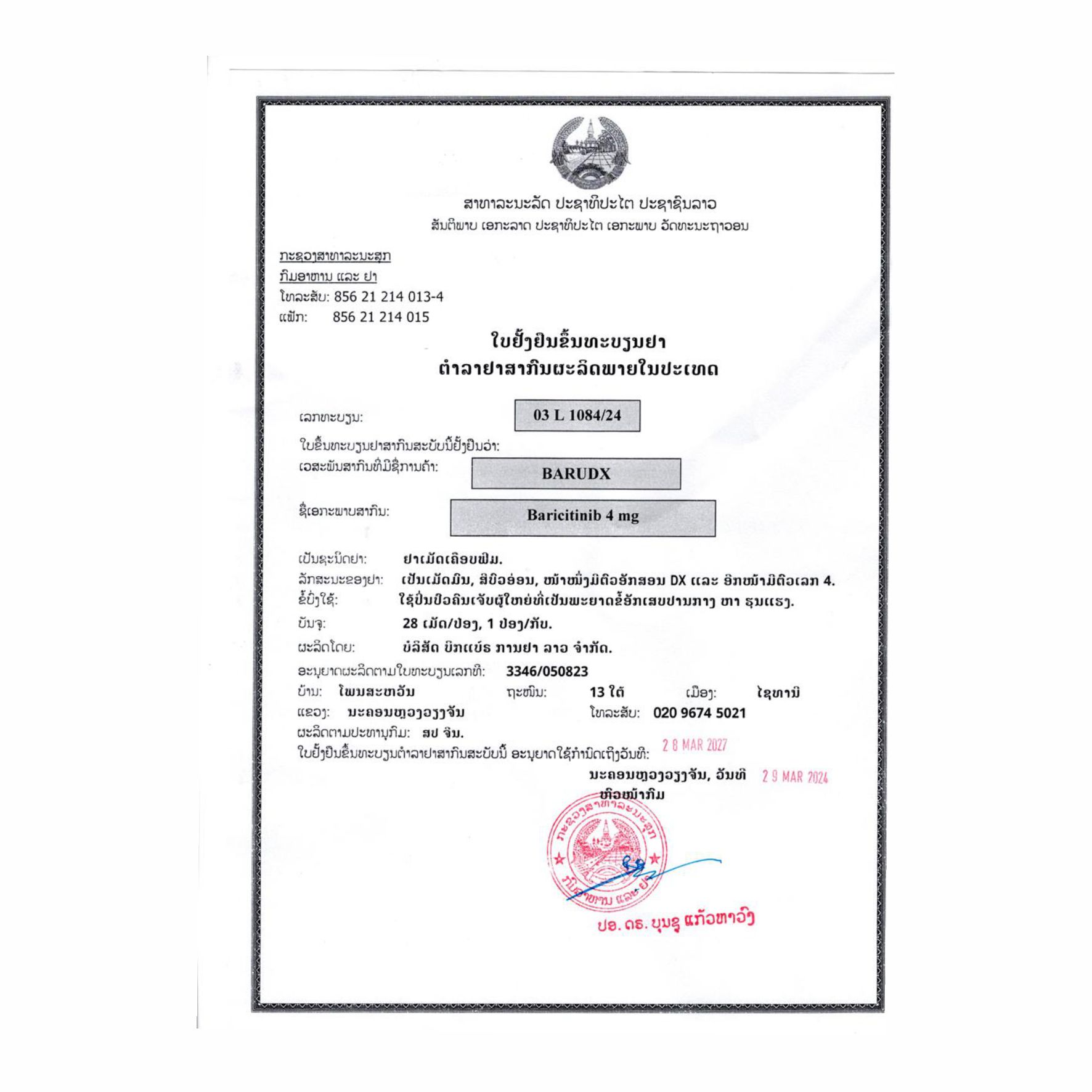 • BARUDX 可作为单药治疗,也可与甲氨蝶呤或其他非生物制剂 DMARD 联合使用。