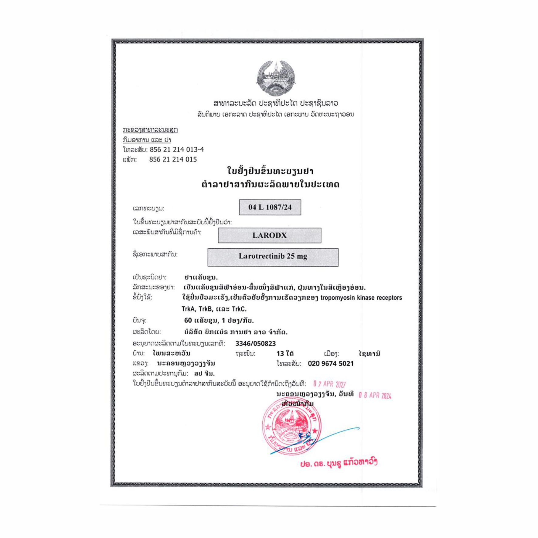拉罗替尼(larotrectinib)是一种强效、口服、选择性原肌球蛋白受体激酶(TRKs)抑制剂,旨在直接靶向TRK(包括TRKB、TRKB、和TRKC),关闭导致TRK融合肿瘤生长的信号通路。