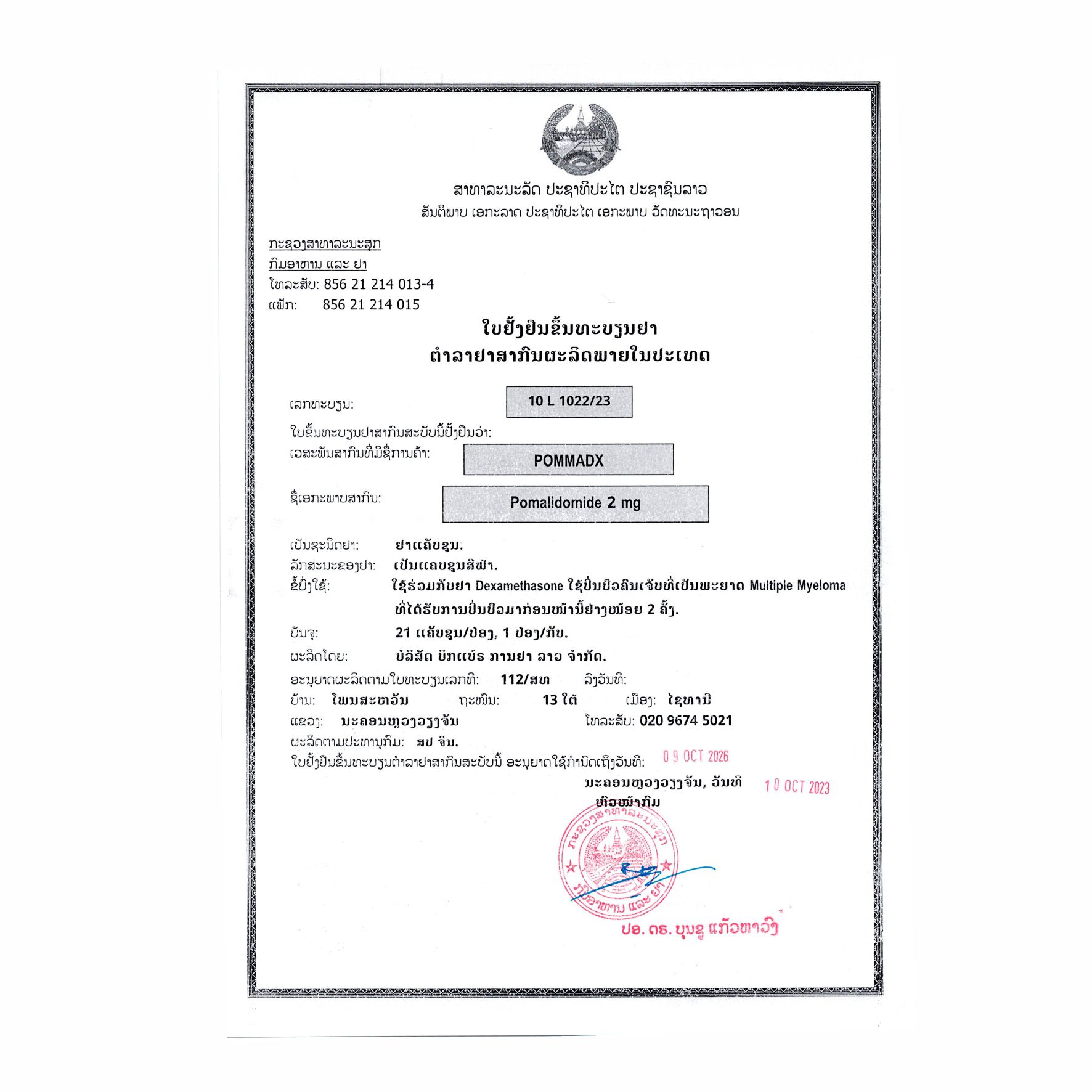 POMMADX 是一种沙利度胺类似物,适用于治疗成人患者:
