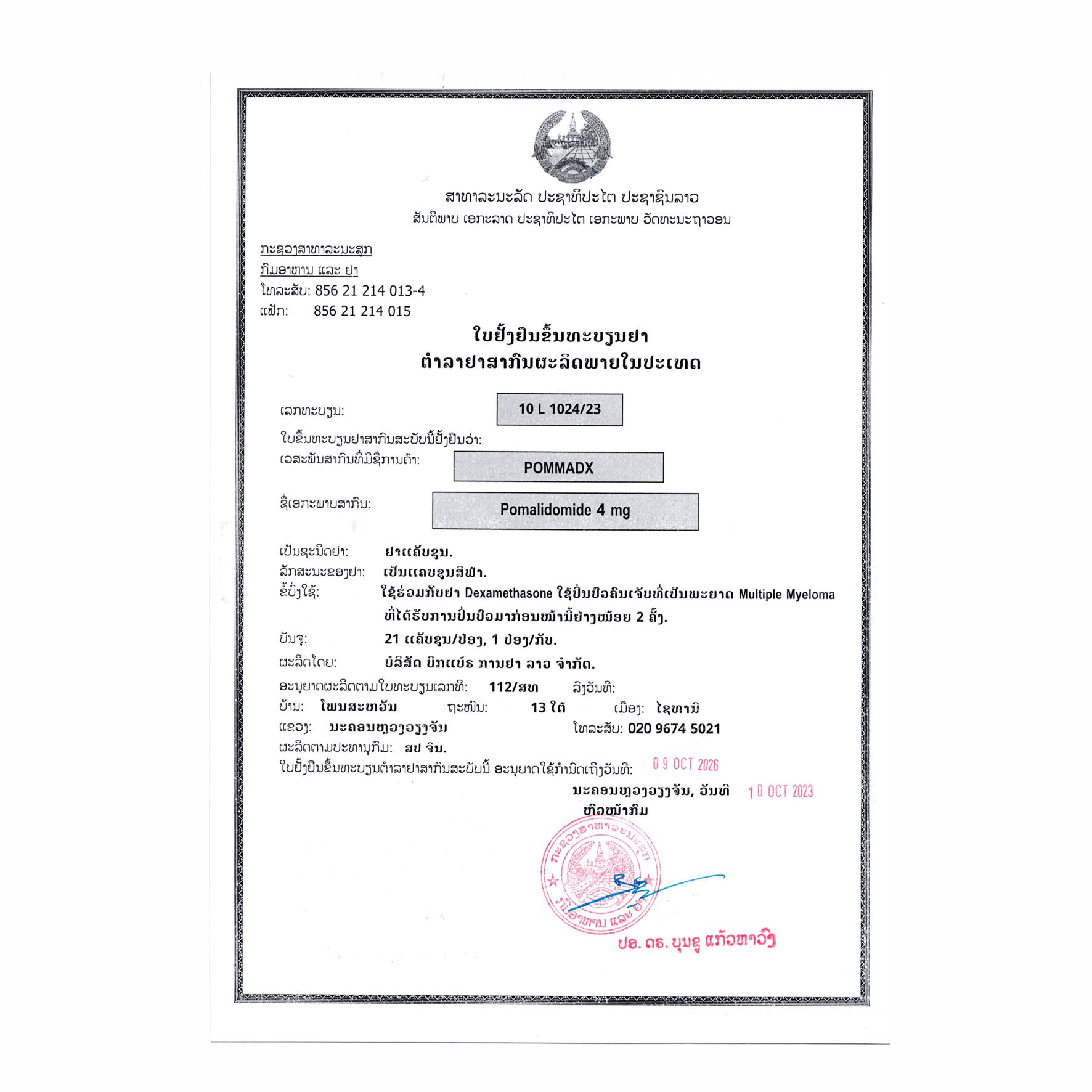 名称:泊马度胺胶囊