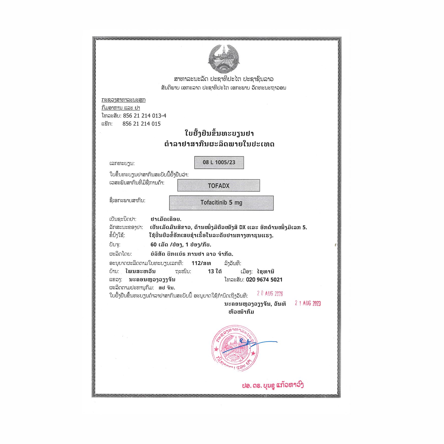 2、银屑病关节炎:TOFADX适用于治疗对甲氨蝶呤或其他改善疾病的抗风湿药物(DMARDs)反应不足或不耐受的成年活动性银屑病关节炎患者。