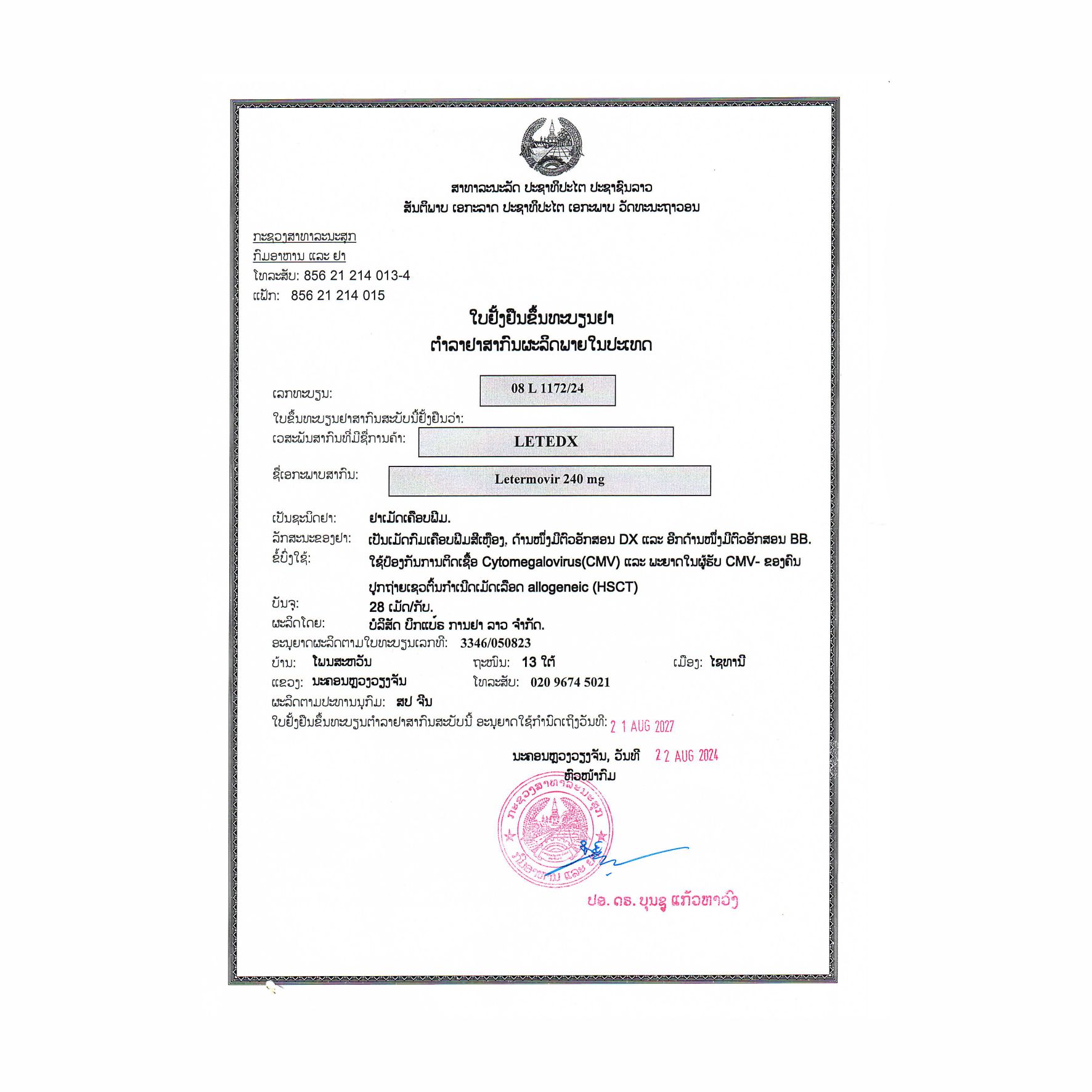 厂家:Bigbear Pharmaceutical Laos