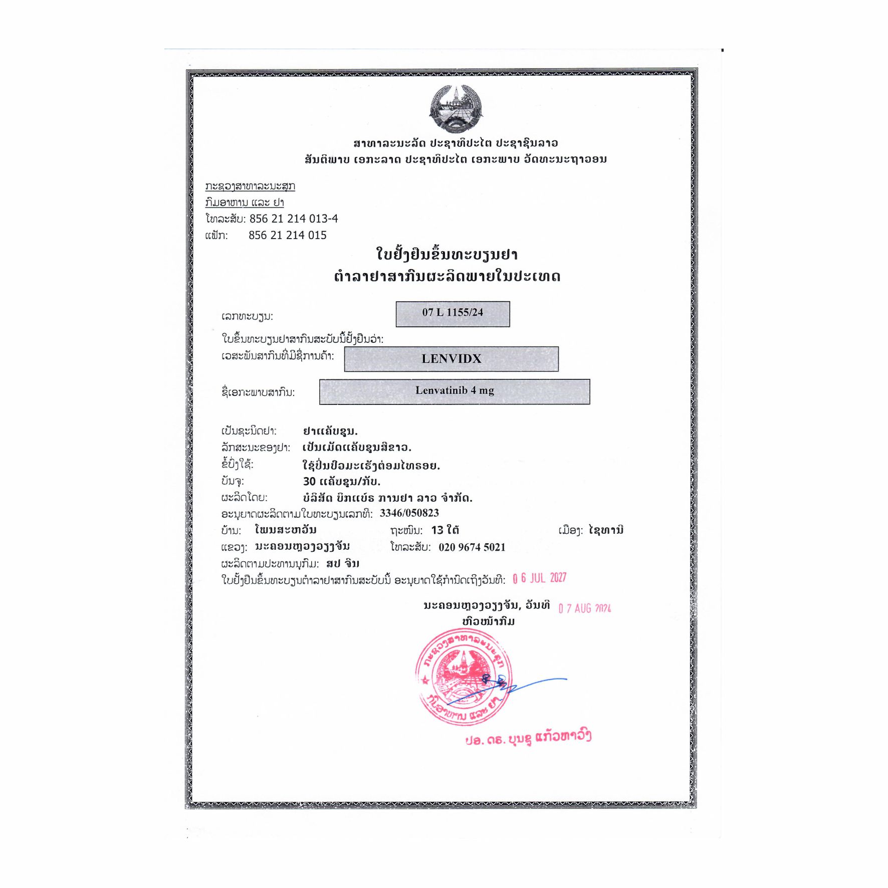 • 伤口愈合受损:在择期手术前至少 1 周停止使用 LENVIDX。大手术后至少 2 周内不要使用 LENVIDX,直到伤口充分愈合。伤口愈合并发症解决后恢复使用 LENVIDX 的安全性尚未确定。